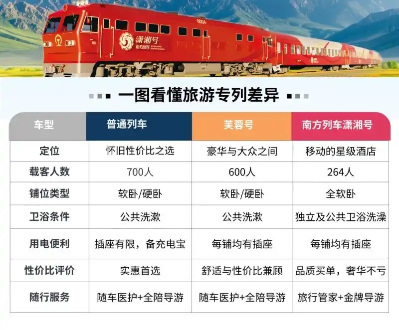 芙蓉号——悠然兼实惠足球投注app,普惠不世俗全新升级的“芙蓉号”是湖南首趟适老化旅游专列,定位普惠型,介于豪华与各人之间,主打“价钱不贵,体验翻倍”。比较世俗绿皮火车,芙蓉号达成了四大升级:铺位更悠然,用电更方便,环境更温馨,管事更贴心。它以湖湘文化为底蕴,将货仓式的悠然与专列的简便情投意合,实在达成“货仓式卧铺”,一站式无忧出行,让幸福路径九牛二虎之力。载来宾数:约600东谈主卫浴条目:全球洗漱区,无淋浴安妥东谈主群:追求悠然与性价比兼顾的搭客世俗绿皮火车——怀旧与性价比之选别一听“绿皮”就摇头。这里说的“绿皮”是历程校正的旅游专列。当今的世俗绿皮专列,诚然步调轻佻,但干净整洁,保留了绿皮火车特地的“慢节律”和“火食气”。在这趟车上,车窗外的戈壁与雪山源远流长,车窗内却是另一番干豫欢娱:有东谈主拉二胡、唱老歌,有东谈主围坐打牌、嗑瓜子聊天。窗外是戈壁雪山,窗内是热干豫闹的东谈主间火食。莫得五星管事,却有最接地气的中国式路径记挂。载来宾数:600~700东谈主铺位类型:硬卧为主,少许软卧卫浴条目:全球卫生间,无淋浴(提议自备湿巾、简单洗漱包)餐饮相貌:餐车简餐、泡面、盒饭安妥东谈主群:中老年合股出行、追求性价比的搭客三款专列奈何选?看这里!追求虚耗,不留缺憾:闭眼选南边列车·潇湘号,它不仅仅交通器用,更是目的地自身。隆重实惠,不肯拼凑:芙蓉号是湖南老乡的实惠之选,悠然升级,价钱亲民。偏疼火食,怀旧时光:世俗绿皮火车性价比最合适,欢娱一分不少,情面味还多几分。