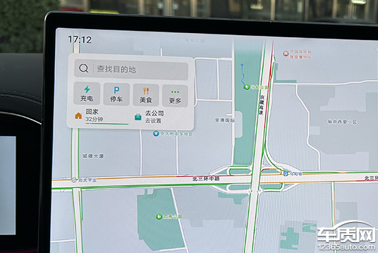 评测车内置高德舆图,可通过触屏、语音,以及无缝流转的车机互联花式开启。界面布局神圣明晰,搜索栏位于左上角。快捷指标地采选包括家、公司,近期搜索的方位也会自动保存在搜索栏下方,实用性施展可圈可点。