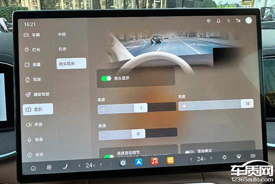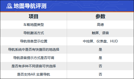 评测车具备HUD昂首数字知道功能,相沿高度、亮度和角度转机,除技能、车速、限速标识外,开启导航时的蹊径也会同步至画面当中,况兼具有雪地模式,方便驾驶者梭巡。
