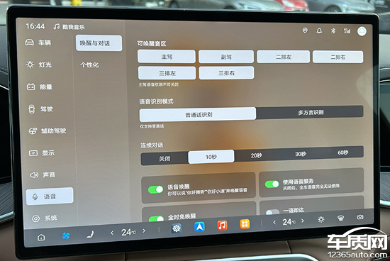 语音交互方面,评测车相沿六区域语音叫醒识别、语音免叫醒词、语音连气儿识别、可见即可说等功能。语音系统默许叫醒词为“你好,腾势”,在语音助手诞生中,用户还能自界说诞生叫醒词,并提供四川话、粤语等方言采选。实测来看,这套语音系统八成快速精确地实验教唆。
