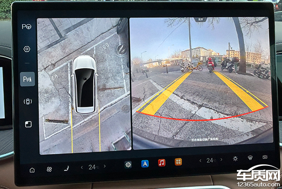 评测车配备360°全景影像,相沿多角度知道,况兼带有引导线,方便用户平日停车。实测来看,在白日阳光相比宽裕的条款下,画质明晰度也很高,关于畸变的截止施展令东说念主满足。此外,评测车还有透明底盘/540°影像,方便驾驶者在复杂地形中判断车辆周围环境。