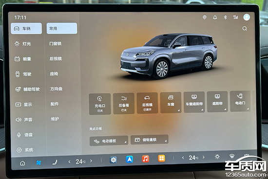 评测车的车机系统界面打算从简前锋,功能区布局合理。下滑中控屏上沿部分会弹出快捷菜单,八成快速操作车辆驾驶模式、灯光、后备厢和屏幕亮度等功能,且相沿功能自界说。