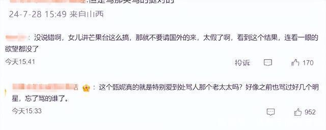 不外也有网友对甄妮的身份建议了猜忌,哪怕他是个老牌艺东说念主,我方看不惯别东说念主不看就好了,为什么还要出言不逊呢?