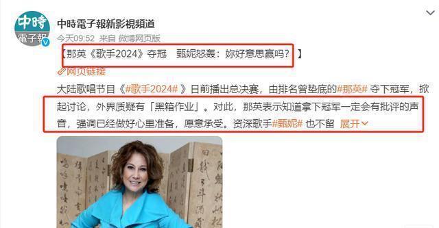除了质疑那英的获利以外,这怼天怼地的甄妮,更是连带着节目组也讪笑了一遍,合计这一切可能王人是节目组内定的。