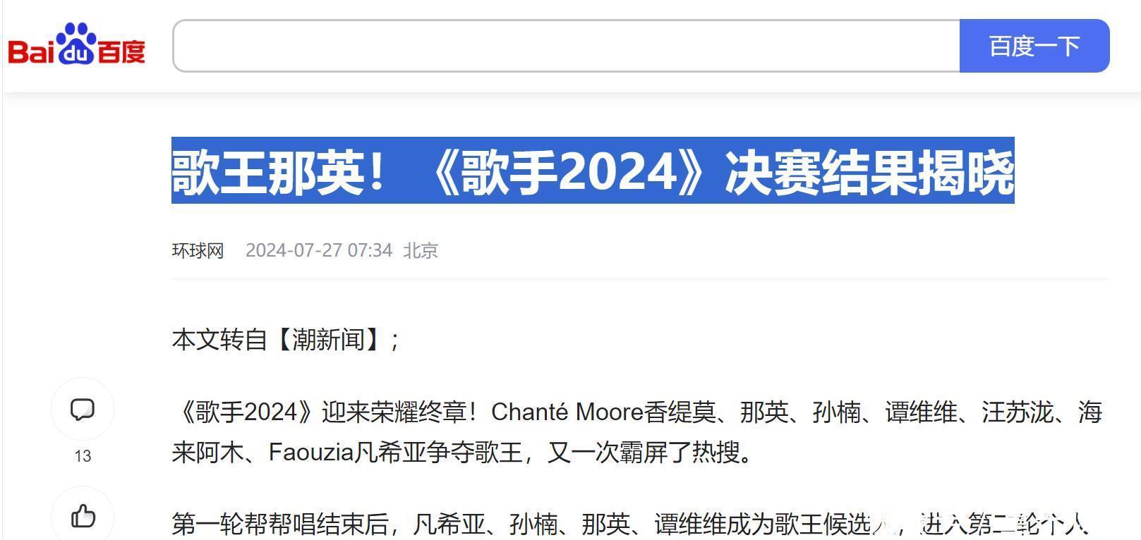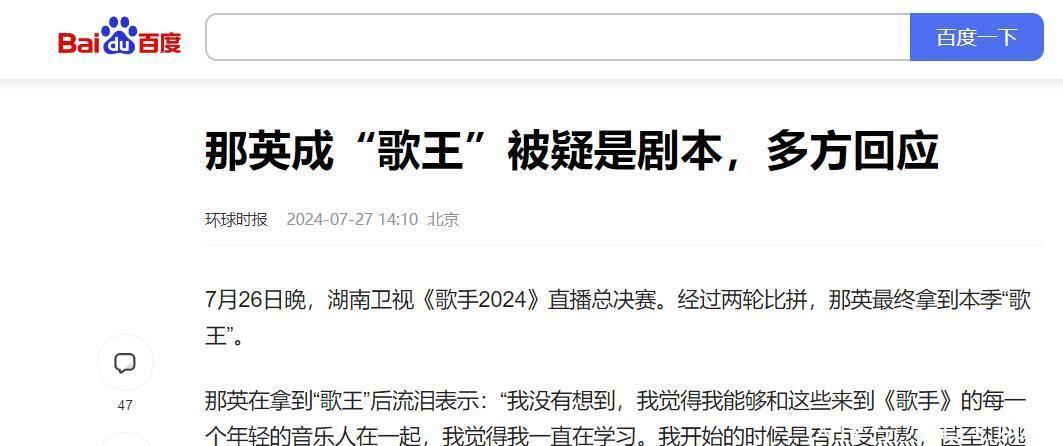 需要堤防的是,尽管关于网上的质疑声,节目组于7月27日回复:“细目确切,无需布防”天然赛后,那英也回复争议: “拿冠军就会有这种报谈,我敢收受负面评价!” 但大大宗网友已经很难买账的。