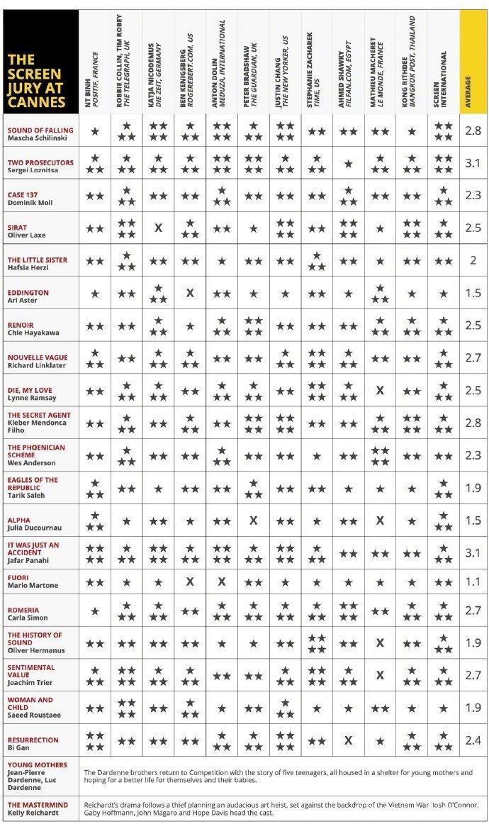 电影亦是如斯,《狂野时间》都让东说念主看不懂了,评分也好不了。目前20部主竞赛单位的电影,都在《银幕》场刊亮出了评分,很缺憾,《狂野时间》只拿到2.4分,排在第11名,相对靠后,这么的获利,拿金棕榈基本没戏,其他奖项也很难了。
